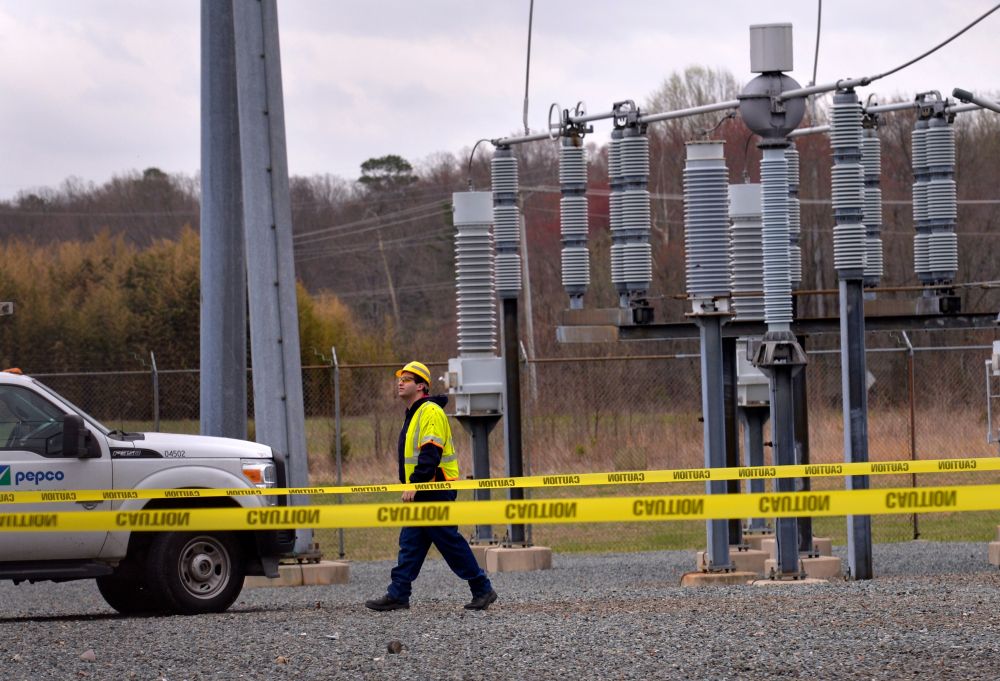 2015年4月7日,工作人员在美国马里兰州查尔斯县南部一座变电站维修。当日,这座变电站发生轻微爆炸,导致首都华盛顿突发大范围停电,白宫、国会和国务院等机构受到波及。新华社记者殷博古摄