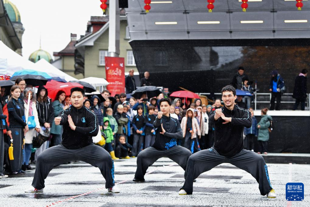 10月25日,在瑞士首都伯尔尼,表演者在“遇见中国”文化节上展示中国武术。