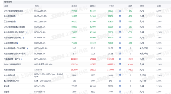 锂化合物现货价格