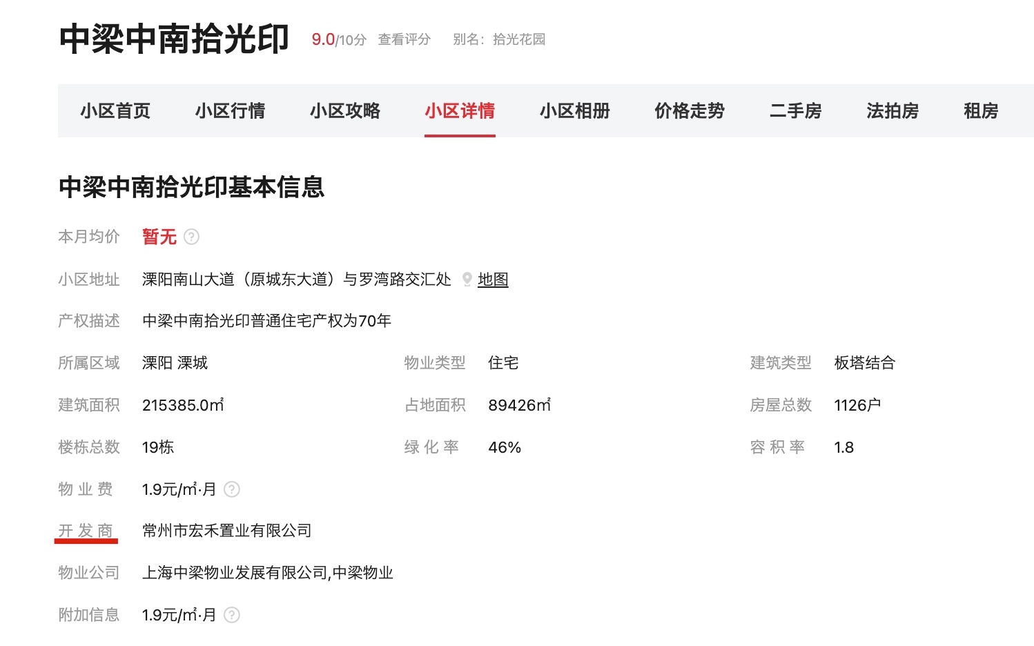 该项目由常州市宏禾置业有限公司开发,物业公司为上海中梁物业发展有限公司(中梁物业)。