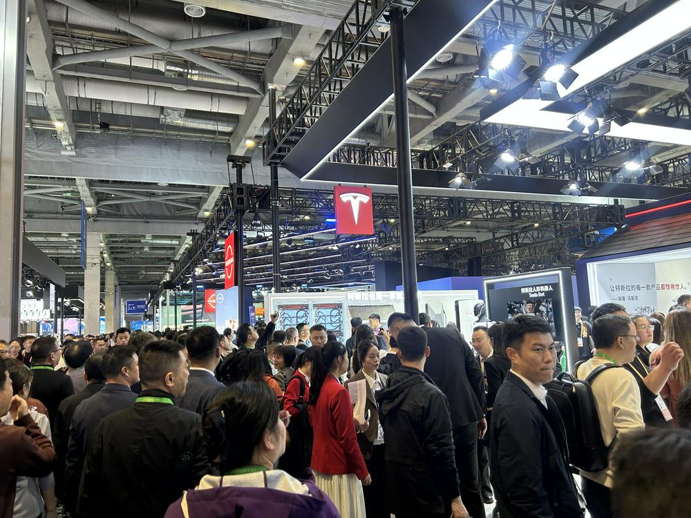 在汽车展区里,特斯拉的展台更是人气爆棚,现场甚至需要排队入场。记者看到,特斯拉展台以一个未来街区的面貌,展示了包括Cybercab无人驾驶电动车、人形机器人,以及太阳能屋顶SolarRoof、Powerwall家用储能系统等多场景能源产品。