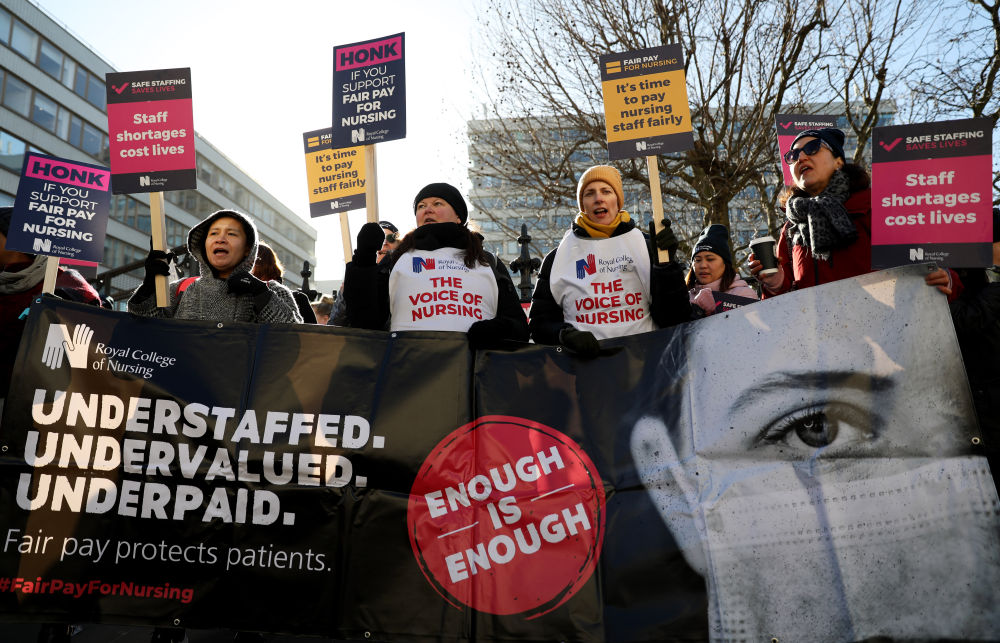 本轮罢工相对集中于公共部门,因为公共部门员工实际工资缩水更加明显。“已有越来越多的护士因为在目前经济环境下无法负担生活成本而选择离职,英国护士岗位空缺正在大幅增加。”参与罢工的护士玛丽·乔告诉新华社记者。