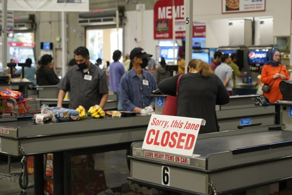 6月29日,顾客在美国旧金山湾区福斯特城一家超市结账。新华社记者吴晓凌摄