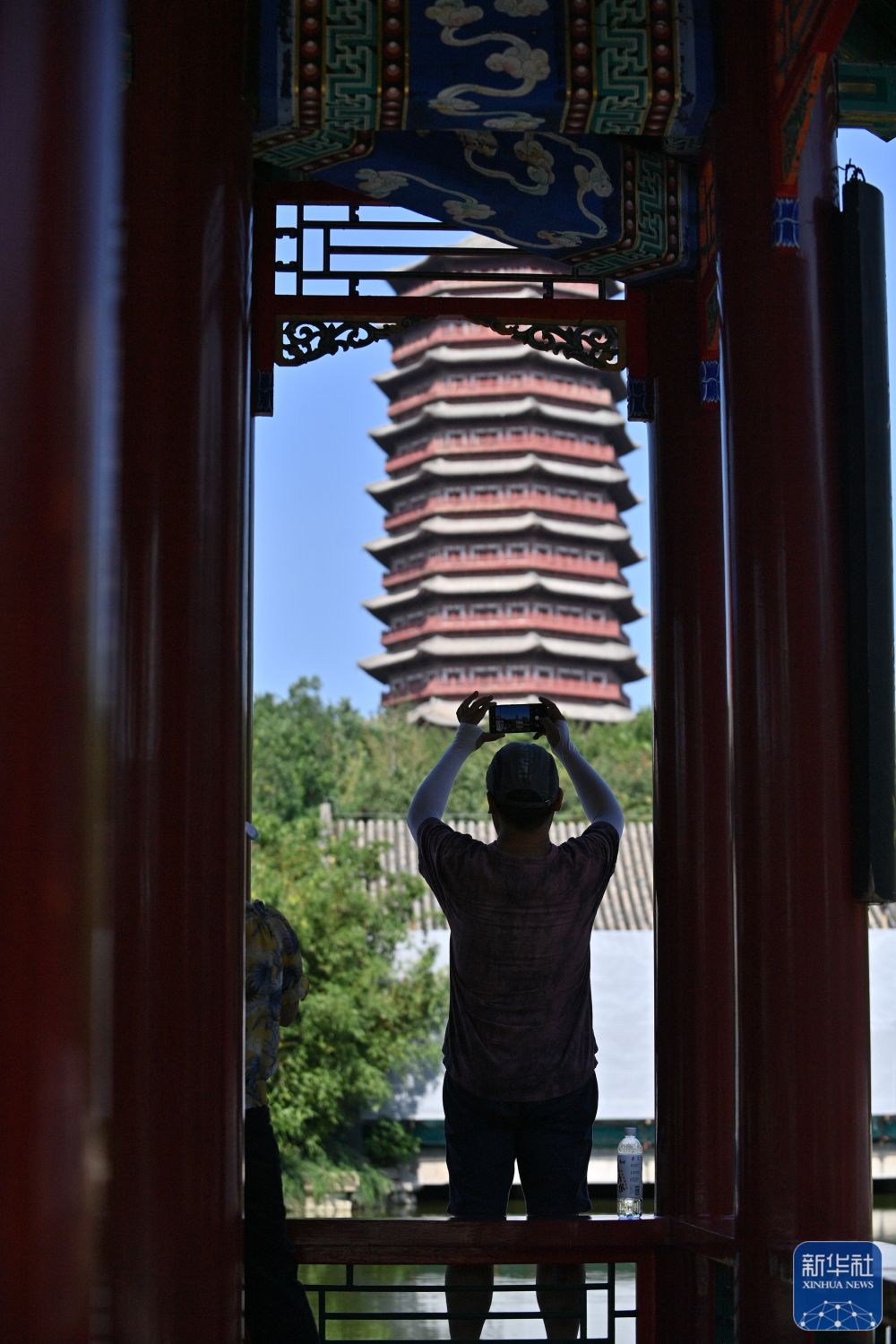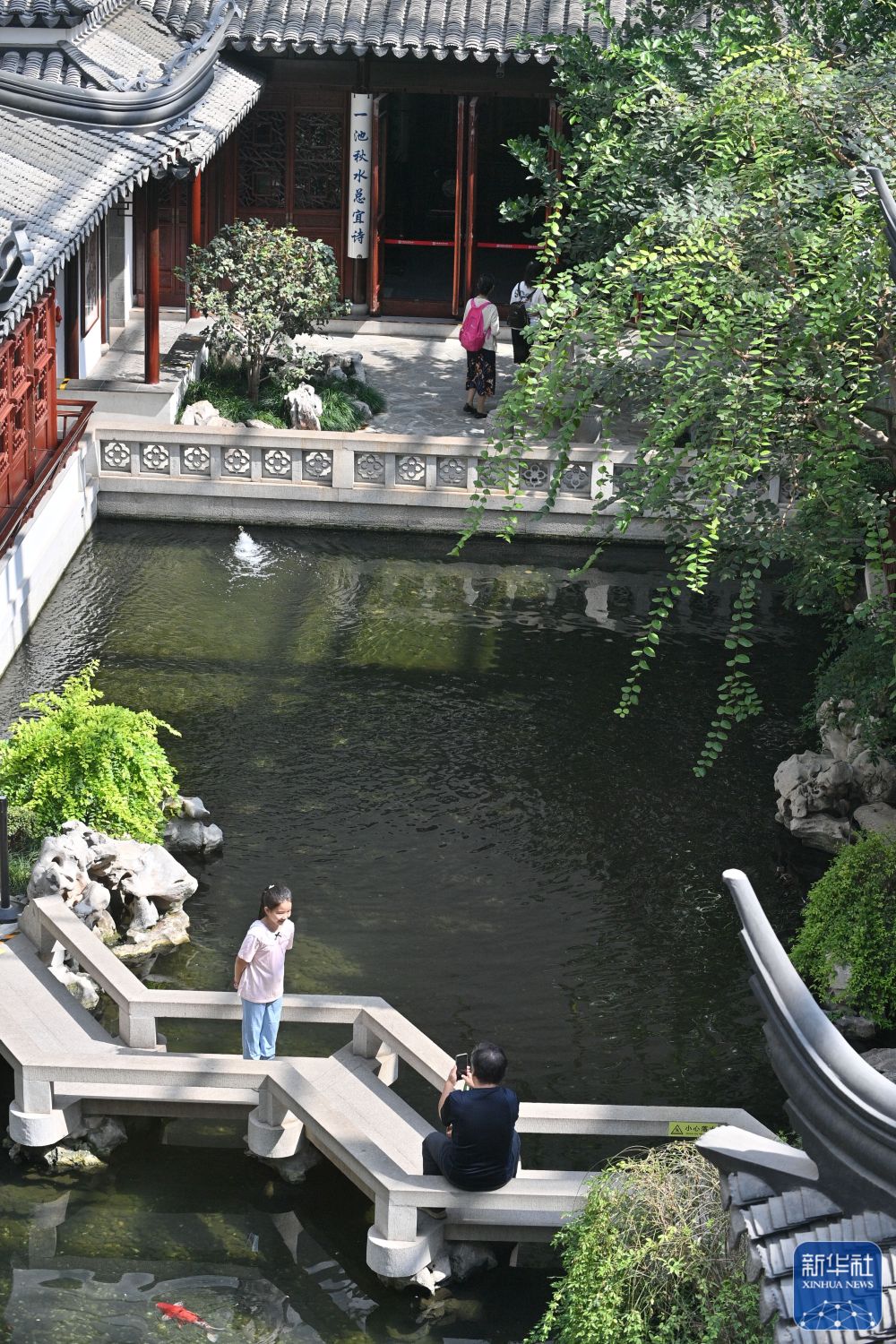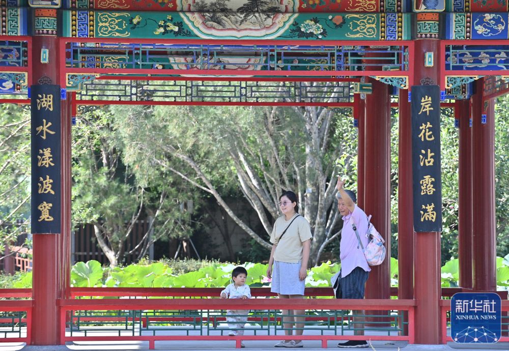 8月28日,参观者在中国园林博物馆镜影亭参观。新华社记者 尹栋逊 摄