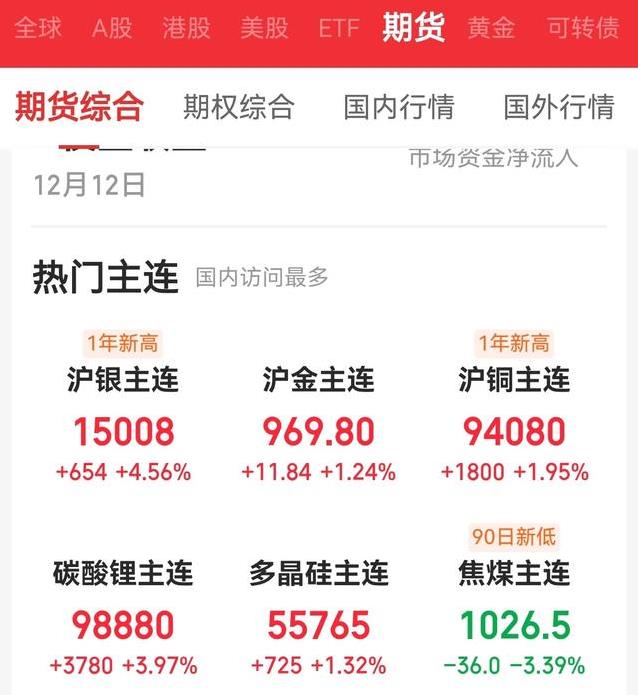十二月十二日那天,期货市场突然热闹起来,好多有色金属价格一下子就蹿上去了,让人看得有点惊讶。美联储那边刚宣布降息,虽然幅度只有二十五个基点,没达到一些人期望的那么大,但市场还是觉得这是个宽松的信号,美元有点走弱,实际利率往下压,这就给黄金和白银这些贵金属添了把火。结果沪银带头冲,涨幅好几个百分点,沪金也稳稳上涨,沪铜和沪铝跟着一起动,碳酸锂更是反弹明显。很多人早上打开盘面,都觉得这波涨得挺猛的,心里直犯嘀咕,这到底是短期热闹,还是真要持续一段时间。
