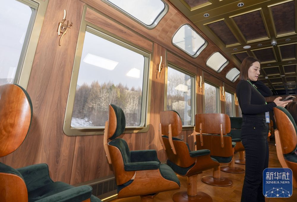 ↑12月6日拍摄的“伊春号”旅游专列车厢内部。