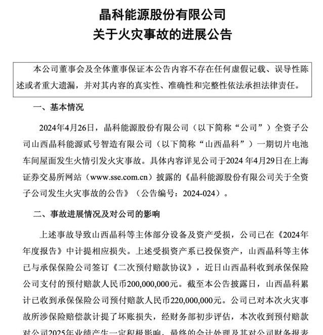 光伏企业的生产和财务管理常常需要应对市场价格波动和突发事件的影响。这次火灾事故的处理过程,从应急响应到理赔推进,再到复建实施,形成了一个完整的应对链条。2.2亿元预付赔款的到账,为公司提供了具体的资金支持,有助于后续生产计划的执行。