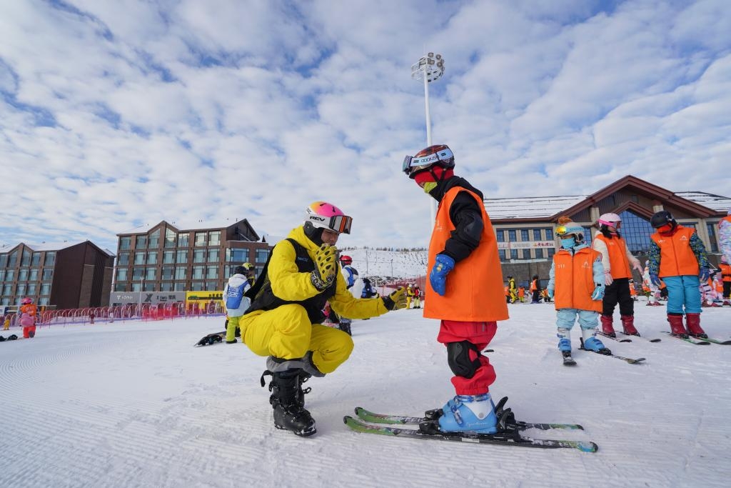 在乌鲁木齐丝绸之路滑雪场,二年级小学生王韵然的滑雪初体验十分完美,教练都夸赞他学得快。冬令营里,500多名孩子在教练指导下学习。雪道旁,世界极限运动会冬季赛冠军王梓阳的妈妈,同样也是雪场员工的杨秀花望着孩子们,期盼走出更多“小黑”,站上世界赛场。