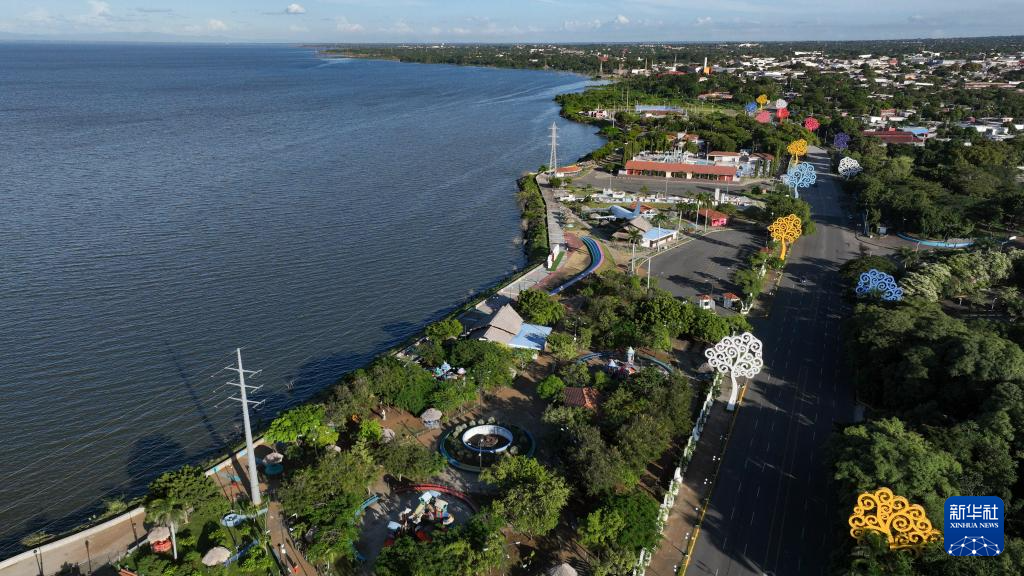 11月17日在尼加拉瓜首都马那瓜拍摄的马那瓜湖(无人机照片)。