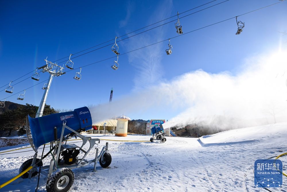 ↑12月2日,在天津市蓟洲国际滑雪场,造雪机正在造雪。新华社记者赵子硕摄