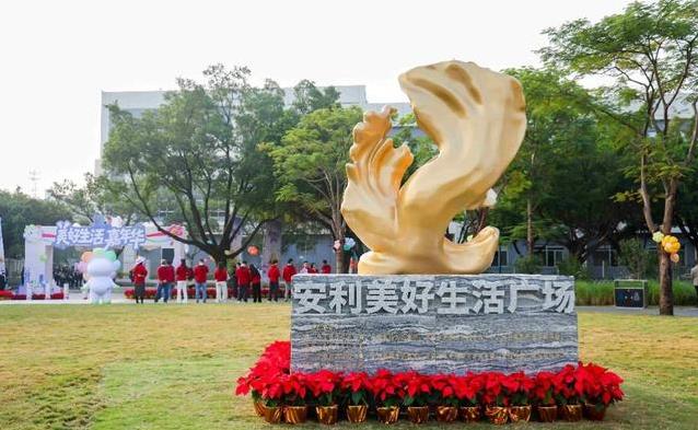 广场不大,却处处有心。靠河边有个小码头,剧场、健身步道、篮球架、儿童滑梯一应俱全,市集摊位上,安利社群的伙伴和本地老字号一起卖云吞面、艇仔粥、双皮奶,香气混着河风飘很远。中间那座叫“运启繁花”的雕塑最打眼,底座刻着一行字:以花为媒,以水为脉,共筑美好未来。很多人站在那儿拍照,有人忍不住感叹,这不就是政企合作最理想的样子吗?把企业的那份力,真正变成了老百姓摸得着、用得上的日常幸福。