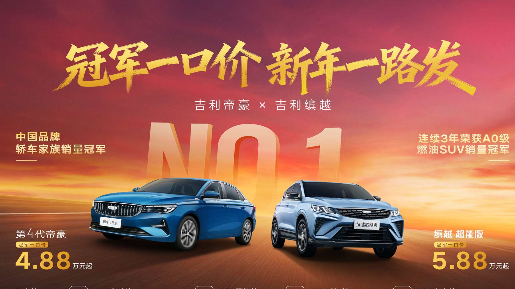近日,吉利中国星系列推出新年限时优惠活动,第4代帝豪4.88万元起、缤越超能版5.88万元起。