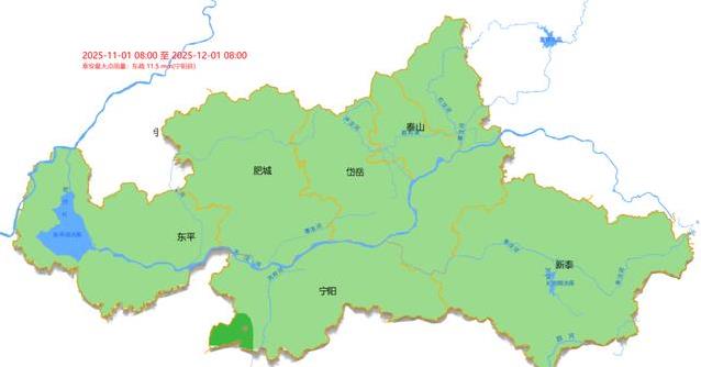 其实雨就下了一次,真就一次。十一月七号下午四点到八号凌晨两点,下了6.8毫米,占了整个月降水的几乎全部。这一场雨来得急,走得也快,宁阳东疏那个雨量站测到11毫米算最多的了,其他地方大多没破十。雨一停,接下来的二十多天,泰安的天空干净得像刚擦过的玻璃,一滴水都没再挤出来。有人开玩笑说,老天爷把十一月的雨票全攒到十二月准备一次性报销了。