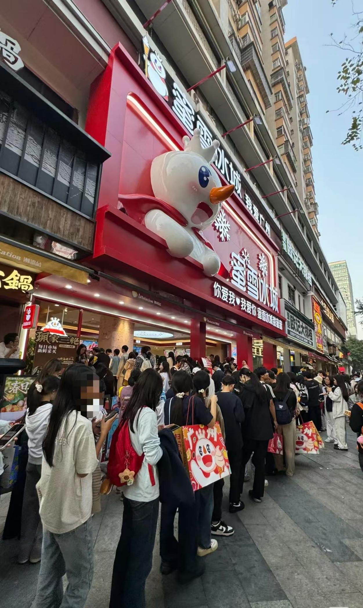 12月5日,蜜雪冰城广州首家旗舰店开业,吸引众多消费者前往体验。