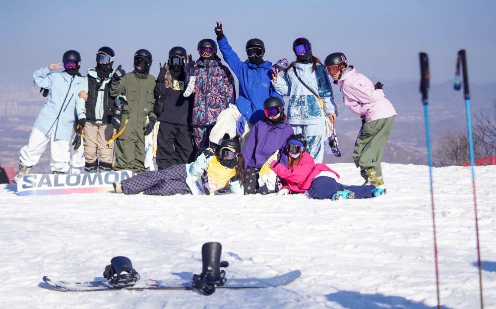 2025年11月22日,滑雪爱好者在吉林省吉林市中旅松花湖度假区合影留念。新华社记者颜麟蕴摄