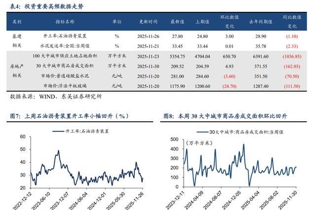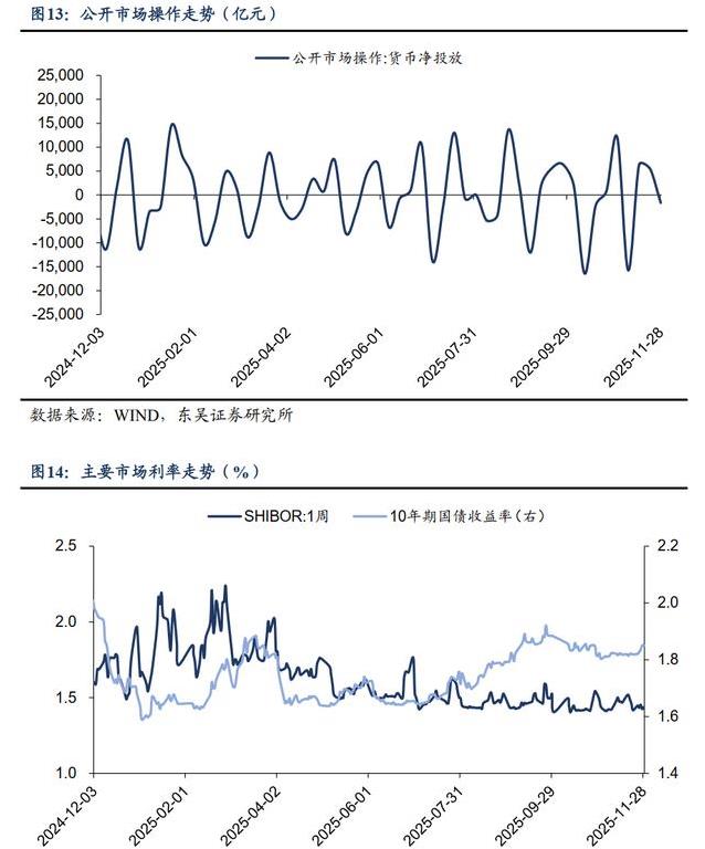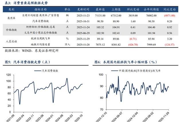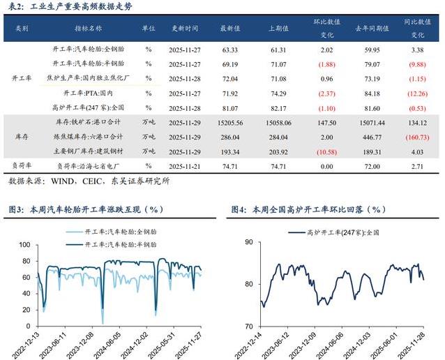 通过这些高频指标可以看出,11月经济运行的特点是供需两端保持相对平稳,但需求端的回落幅度略有不同。供给端指数的变动较小,出口指标出现回升,而投资和消费指标继续处于较低水平。国债买卖操作的开展更多注重长期流动性的稳定,而非短期规模的显著变化。工业生产、库存、销售等具体数据进一步印证了经济活动在既有水平上的运行态势。各项指标的数值变化为观察经济运行提供了清晰的依据。