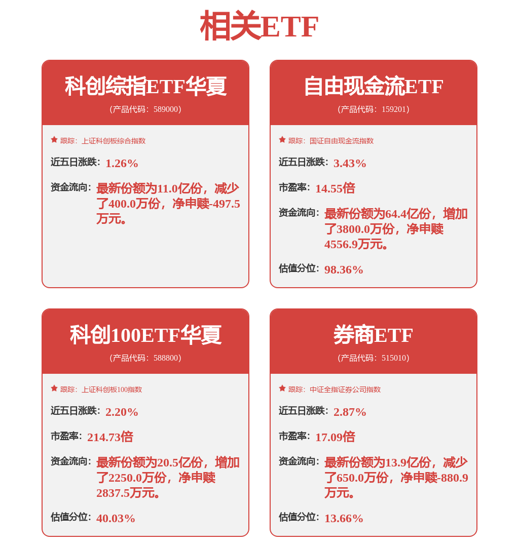 券商ETF基金(515010)跟踪证券公司指数(代码399975),指数前十大成份股权重达59.88%,一键配置券商龙头,直接受益A股行情回暖,该产品管理费托管费合计费率0.2%,为当前场内费率档次最低投资标的,助力投资人低费率布局券商板块。