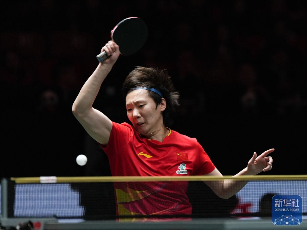 ↑中国队选手王曼昱在比赛中回球。最终,她在女单比赛中2比1战胜日本队选手伊藤美诚。新华社记者王迎摄