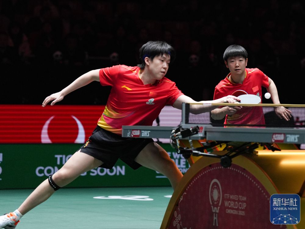 12月6日,在四川成都举行的2025年国际乒联混合团体世界杯第二阶段比赛中,中国队总比分8比5战胜日本队。