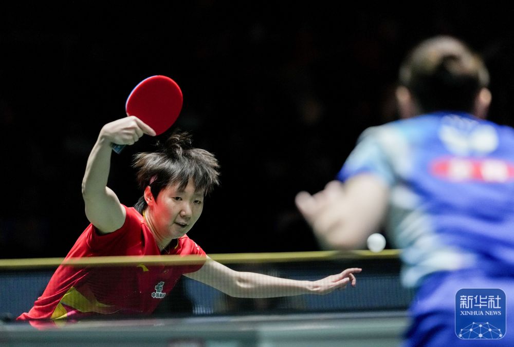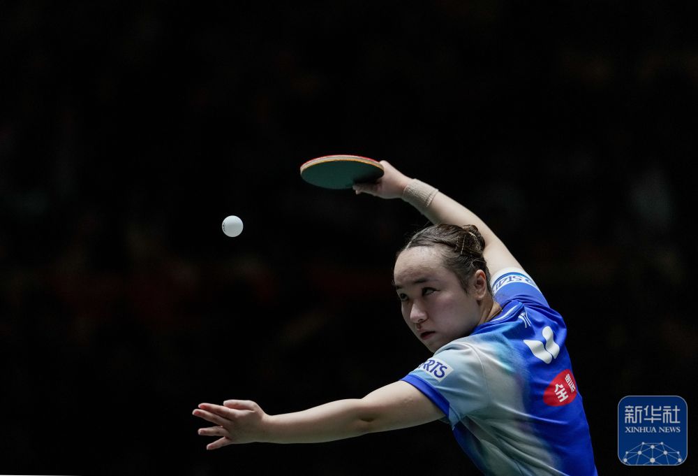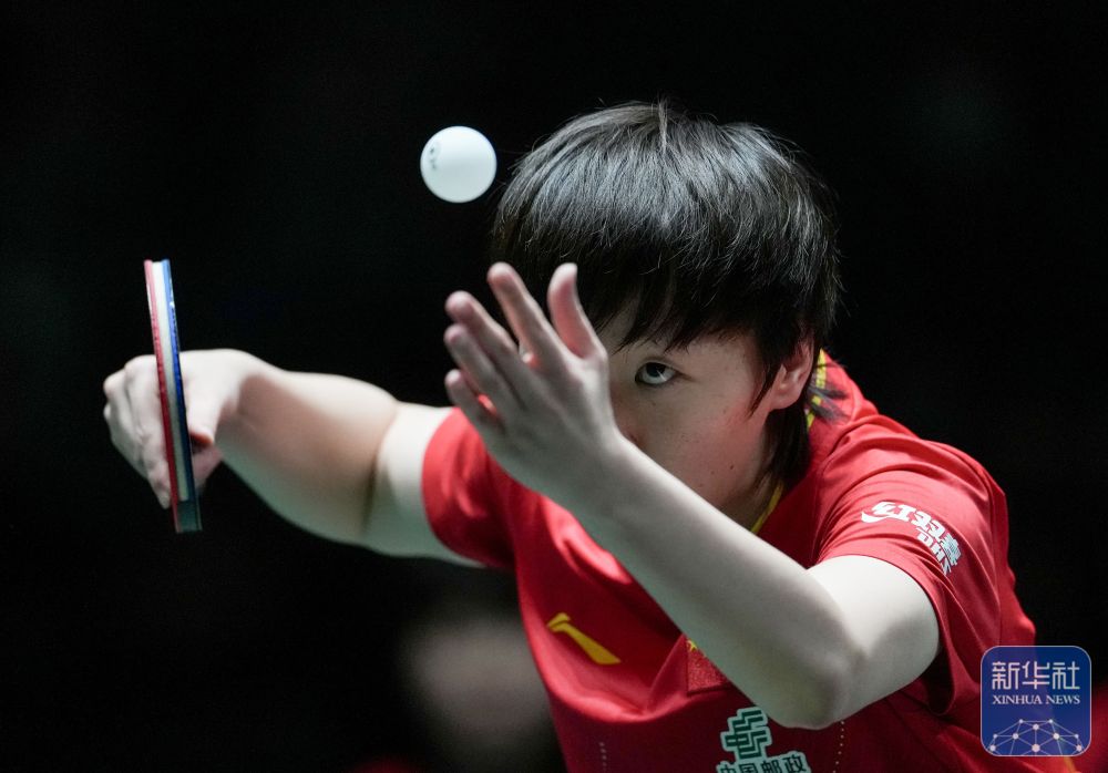 ↑中国队选手王曼昱在比赛中回球。最终,她在女单比赛中2比1战胜日本队选手伊藤美诚。新华社记者王曦摄
