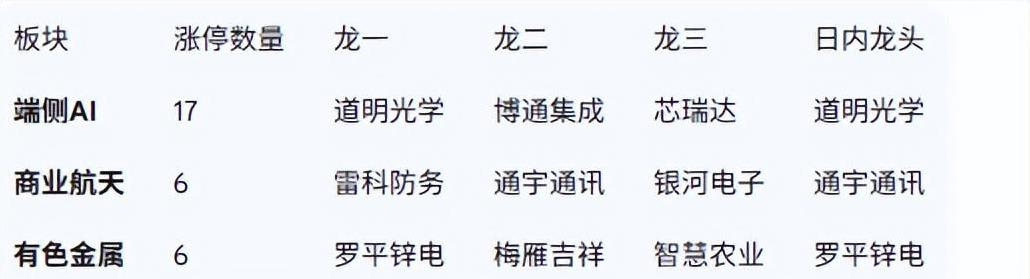 全市场63只自然涨停,跌停只有3家。两市成交额放大到18739亿,比昨天多放2881亿。钱来得太猛,资金全往科技股里砸。端侧AI、商业航天、有色金属三个方向最亮眼,分别贡献17家、6家、6家涨停板。