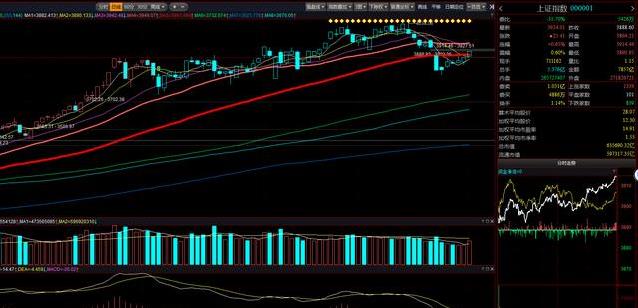 大盘今天跳空高开,留下3896-3903的缺口。沪指最高3914点,最低3890点,最后收在3910点附近,小阳线,成交7800亿。创业板更强,收盘涨1.5%以上。国证2000指数站上60分钟120均线,短线情绪明显回暖。