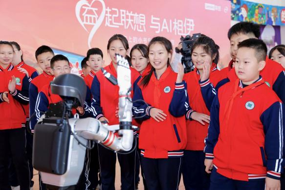 孩子们与联想首位硅基员工“乐享壹号”快乐互动
