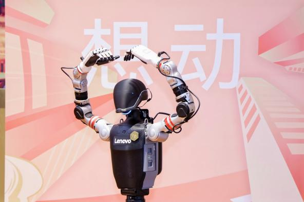 最先亮相的是联想首位硅基员工“乐享壹号”。它不但参与了捐赠仪式,还带着孩子们一起打起了太极,孩子们瞬间围拢过来,迫不及待地和它问答、互动。