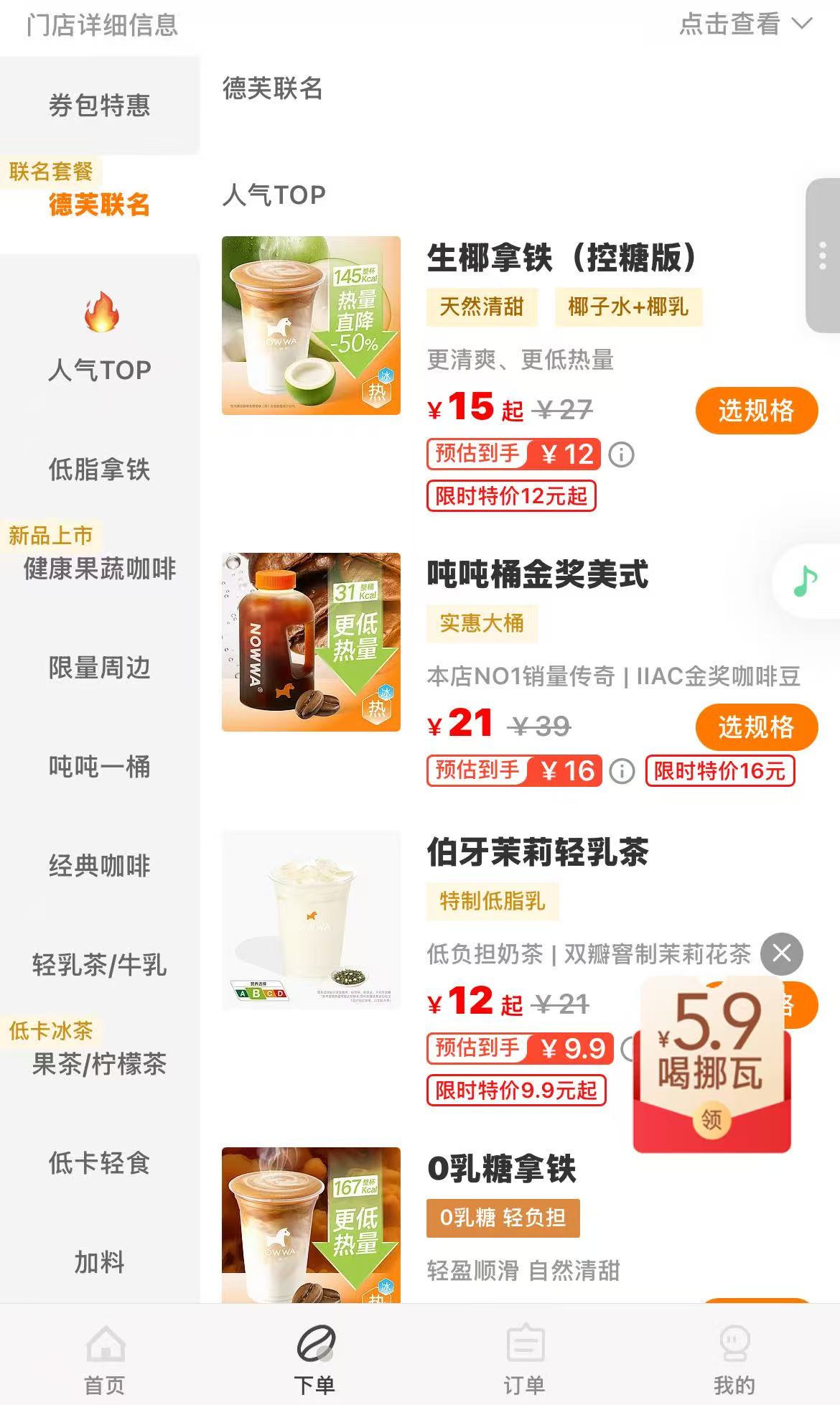 目前挪瓦虽然主打低卡定位,但缺乏一款像瑞幸“生椰拿铁”那样具有破圈效应、能定义品牌形象的标志性爆品。与此同时,“店中店”模式通常意味着操作空间和设备受限,菜单往往以经典款和易于标准化制作的饮品为主,这在一定程度上限制了产品创新的复杂度和呈现形式。