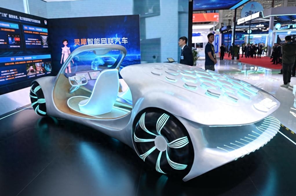2025年4月29日,在第八届数字中国建设峰会现场体验区拍摄的灵犀智能网联汽车。新华社记者林善传摄